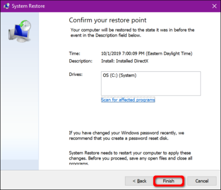 Наконец, если ничего не помогает, надейтесь, что Windows 10 создала точку восстановления до того, как начались проблемы со звуком.