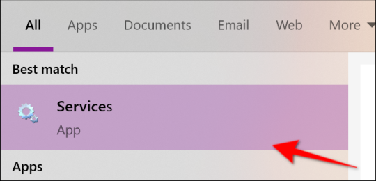 Нажмите клавишу Windows, введите «Службы» в поле поиска панели задач и выберите приложение «Службы» на рабочем столе в результатах.