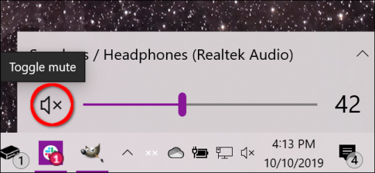 Сначала убедитесь, что звук на компьютере не отключен. Если на вашей клавиатуре есть регуляторы громкости, нажмите клавишу или поверните ползунок, чтобы увидеть, поднимается и опускается ли громкость на экране. Вы также можете вызвать панель задач, чтобы проверить значок «динамик», припаркованный рядом с системными часами.