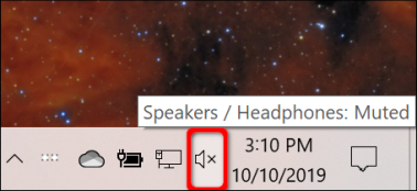 Как показано ниже, «X» рядом со значком виртуального динамика означает, что звук отключен. Просто нажмите кнопку динамика, чтобы расширить панель громкости.