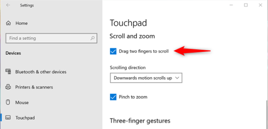 В разделе «Прокрутка и масштабирование» настроек точной сенсорной панели вы можете выбрать способ использования сенсорной панели для прокрутки и масштабирования: если вы хотите прокручивать по горизонтали или вертикали, поместив два пальца на сенсорную панель и затем двигая их по ней, включите параметр «Перетащите два пальца для прокрутки».