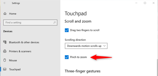 Наконец, включите настройку «Сжать для увеличения», если вы хотите иметь возможность поместить два пальца на сенсорную панель, а затем сжать для увеличения или растянуть для уменьшения.