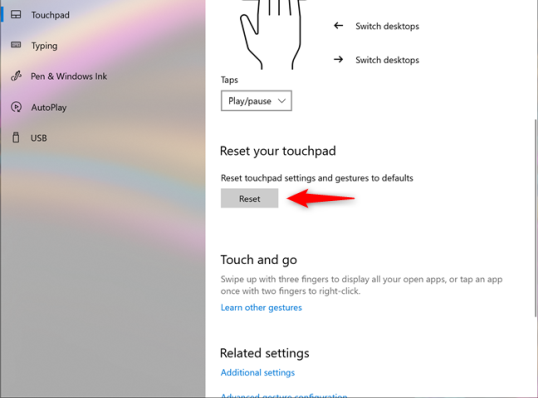 В конце страницы настроек точной сенсорной панели есть также небольшой раздел «Сброс настроек сенсорной панели». Он имеет только одну кнопку, называемую «Сброс», которую вы можете щелкнуть или нажать, если вам больше не нравится способ, которым вы настроили сенсорную панель, и вы хотите сбросить ее настройки и жесты к значениям по умолчанию, предоставленным Windows 10.