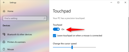 Если ваш ноутбук или планшет с Windows 10 оснащен точной сенсорной панелью, вы можете включить или отключить ее, включив или выключив переключатель сенсорной панели.