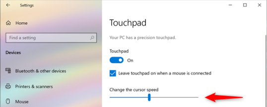 К сожалению, у многих сенсорных панелей скорость курсора по умолчанию установлена очень высокой или очень низкой, что не очень хорошо, если вы не привыкли работать с сенсорными панелями. Однако, если у вас точная сенсорная панель, вы можете легко изменить ее скорость курсора, отрегулировав ползунок «Изменить скорость курсора» в настройках сенсорной панели.