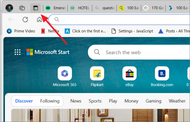 - Если в браузере Edge открыто несколько вкладок, связанных с определенной задачей или темой, нажмите кнопку «Меню действий с вкладками», расположенную в верхнем углу окна браузера (рядом с первой вкладкой).