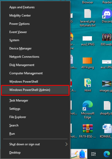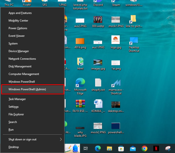 Нажмите сочетание клавиш «Windows+X» на клавиатуре, затем выберите в меню опцию «PowerShell (Admin)»: