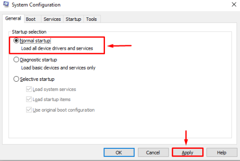 На вкладке «Общие» настроек системы отметьте переключатель «Обычный запуск» и нажмите кнопку «Применить»: