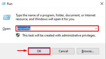 Нажмите сочетание клавиш «Windows+R» и напишите «msconfig» в текстовом поле диалогового окна «Выполнить»: