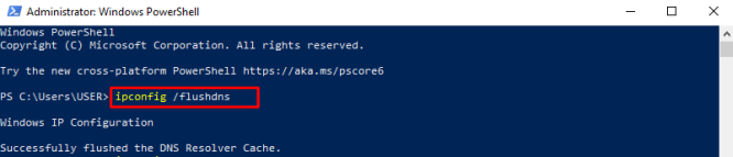 После этого PowerShell покажет, что кэш преобразователя DNS успешно очищен: