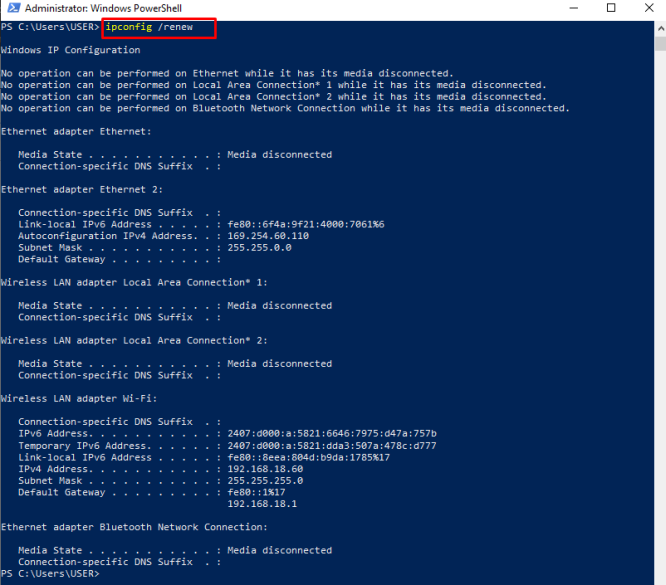 Затем вставьте приведенную ниже команду, чтобы обновить IP-адрес: