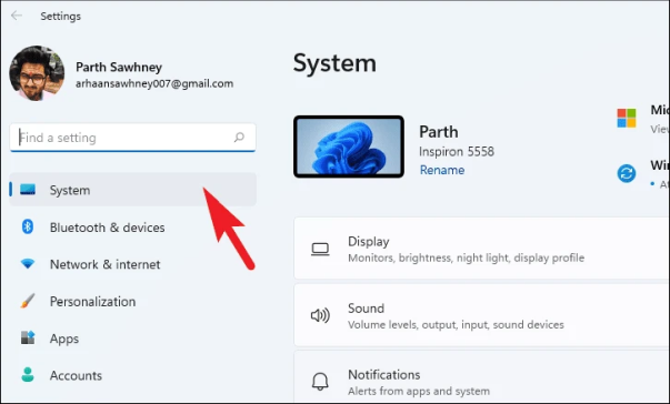 Затем убедитесь, что вы выбрали вкладку «Система» на левой боковой панели.
