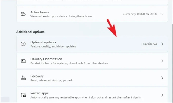 Далее нажмите на плитку «Необязательные обновления», чтобы продолжить.