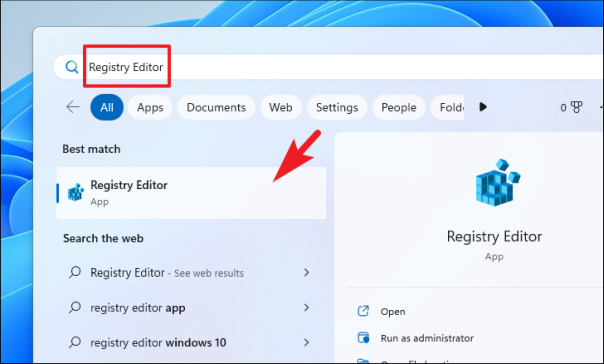 Сначала откройте меню «Пуск» и введите «Реестр», чтобы выполнить поиск. Затем в результатах поиска нажмите «Редактор реестра».