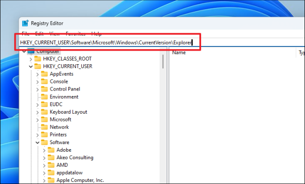HKEY_CURRENT_USERSoftwareMicrosoftWindowsCurrentVersionExplorer