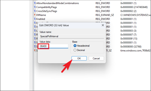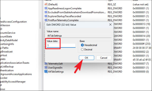 После этого введите 1 в поле данных значения и нажмите кнопку «ОК», чтобы сохранить изменения.