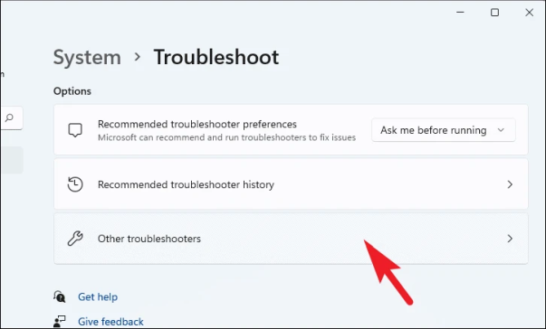 Затем нажмите на плитку «Другое средство устранения неполадок» на странице настроек «Устранение неполадок».