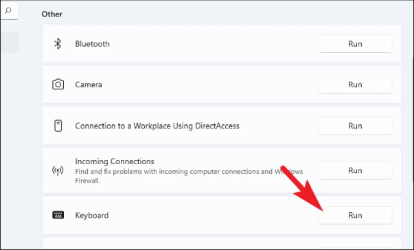 Затем найдите на странице раздел «Другое» и нажмите кнопку «Выполнить» на плитке «Клавиатура», чтобы запустить средство устранения неполадок с клавиатурой.