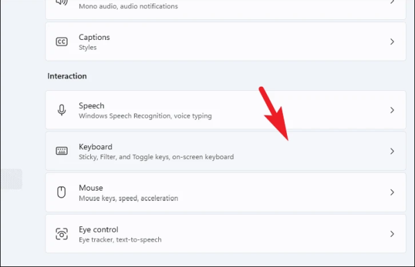 Затем нажмите на вкладку «Специальные возможности» на левой боковой панели, чтобы продолжить.