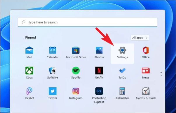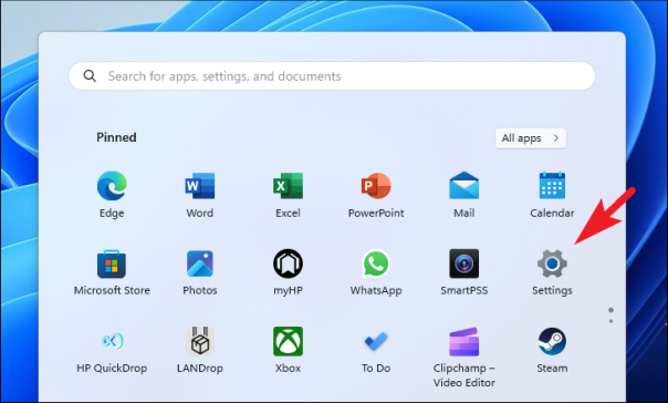 Сначала перейдите в меню «Пуск» и щелкните значок приложения «Настройки».