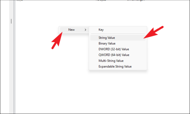 После этого щелкните правой кнопкой мыши правую часть окна и наведите указатель мыши на параметр «Создать». Затем выберите параметр «DWORD».