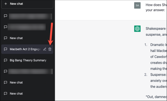 Вместо того, чтобы удалять всю свою учетную запись, вы также можете удалить свои разговоры ChatGPT. ChatGPT хранит записи всех ваших разговоров с чат-ботом в вашей учетной записи, и вы можете просмотреть их снова или продолжить, когда захотите. Кроме того, вы можете удалить любой разговор, если хотите. Но вы не можете удалить отдельные подсказки из разговора.