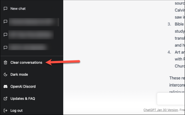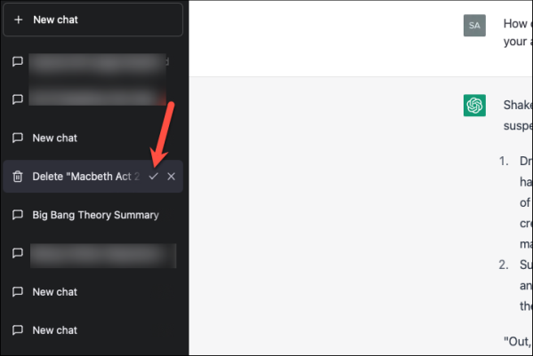 Удалить разговоры ChatGPT