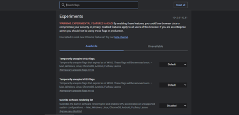 Первый шаг — ввести chrome:/flags в адресную строку Chrome.