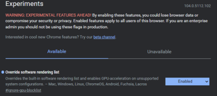 Этот альтернативный метод состоит в том, чтобы переопределить один из нескольких системных флагов и активировать ускорение, когда Chrome не хочет этого делать. Такой подход используется, когда в настройках приложения скрыта возможность включения или отключения аппаратного ускорения.