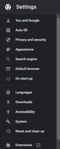 Затем найдите Система на левой боковой панели в меню настроек. В некоторых версиях Chrome система находится в раскрывающемся разделе дополнительных настроек, поэтому обязательно разверните ее.