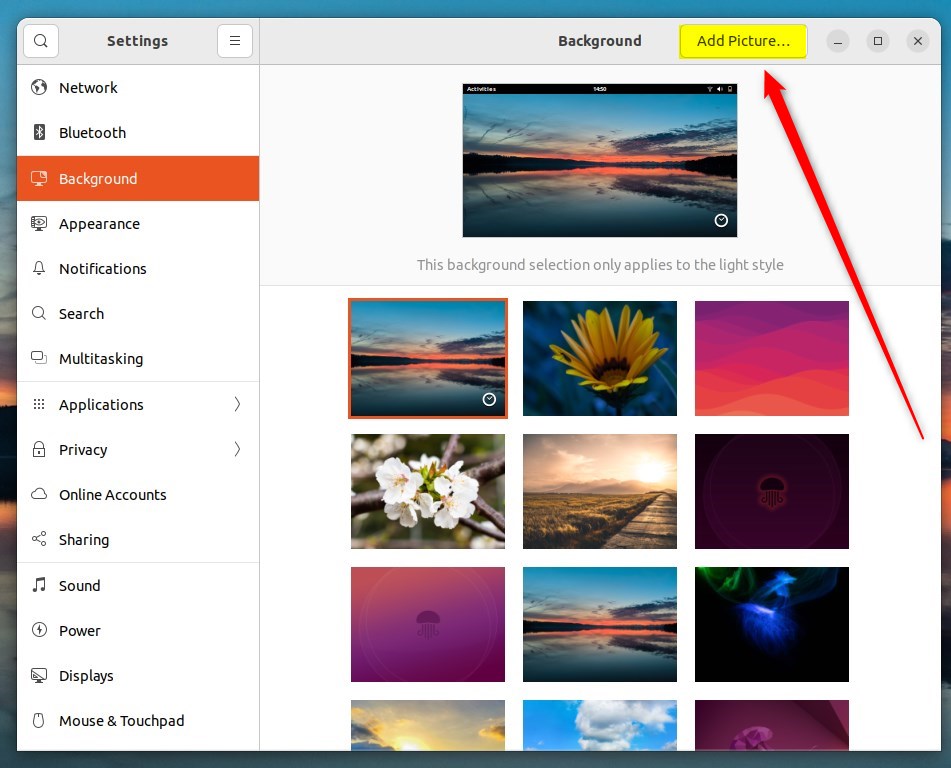 Если вы не хотите выбирать обои, поставляемые с Ubuntu Linux, вы можете добавить свои собственные.
