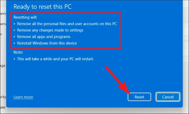 Ваша машина может перезагружаться несколько раз, что совершенно нормально при сбросе настроек. Сброс может занять несколько часов в зависимости от вашего компьютера и выбранных настроек.