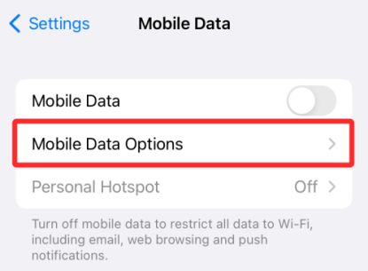 На экране «Мобильные данные» выберите «Параметры мобильных данных».