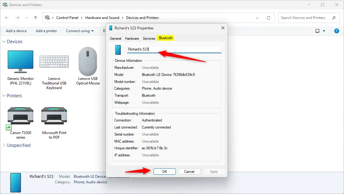 Как уже упоминалось, пользователи могут переименовывать устройства Bluetooth, подключенные к их компьютерам с Windows, чтобы облегчить их идентификацию. Однако не для всех устройств Bluetooth новое имя будет сохранено и запомнено после переименования.