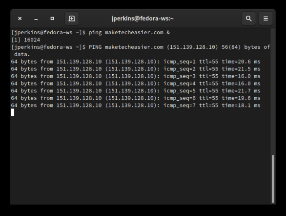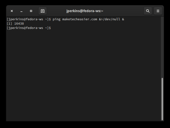 Если вы хотите поместить команду в фоновый режим, используйте & (амперсанд) в конце простой способ сделать это. Таким образом, вы можете выполнить команду в фоновом режиме и продолжать использовать свой терминал во время его работы. Однако у этого есть уловка. Использование &не отключает команду от вас; он просто отодвигает его на задний план. Это означает, что пока вы пытаетесь использовать терминал, все, что команда хочет отправить STDOUT или STDERR все еще будет напечатано, что может отвлекать.