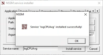 1. Когда служба будет установлена, вы увидите, что служба «logCPUAvg» успешно установлена! окно. Выберите ОК, чтобы закрыть его. На этом установка завершена.