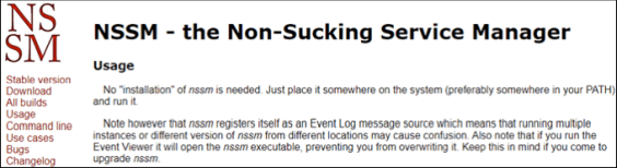 NSSM можно использовать через командную строку Windows или графический интерфейс пользователя (GUI). Это означает, что им может пользоваться каждый. NSSM можно использовать в любой версии Windows, начиная с Windows 2000 включительно. Существуют 32-битные и 64-битные версии. Если вы используете 64-битный компьютер, сначала попробуйте эту версию. Если это не сработает, вернитесь к 32-битной версии.