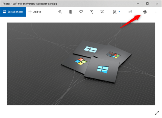 Вам интересно, как печатать из приложения «Фото» на ПК или устройстве с Windows 10? В приложении «Фото» откройте изображение, которое хотите распечатать. Затем нажмите или коснитесь кнопки принтера, показанной в верхней правой части окна. Если вы его не видите, либо увеличьте окно, чтобы появилась кнопка принтера, либо нажмите/коснитесь кнопки «Настройки и другое» (☰), а затем выберите «Печать».