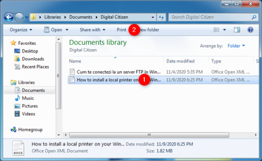 Точно так же, если вы настроили принтер по умолчанию на своем компьютере с Windows 7, вы можете распечатать любой документ или изображение прямо из проводника Windows. Вот как это происходит: