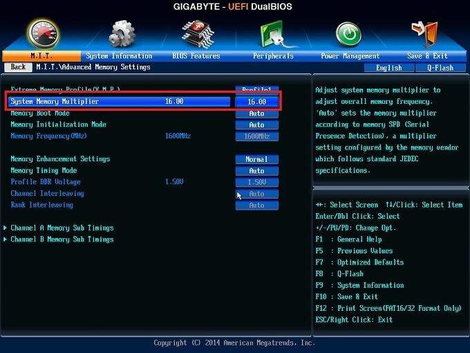 - Найдите страницу частоты памяти и установите вручную множитель и тайминги памяти.
