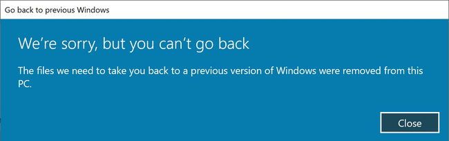 Через 10 дней Windows удалит временную резервную копию последней сборки с системного диска. Если вы будете следовать приведенным выше инструкциям, вы получите следующую ошибку: