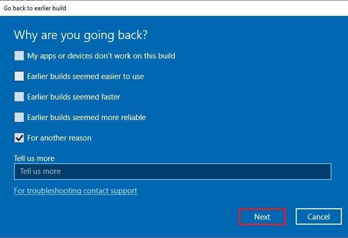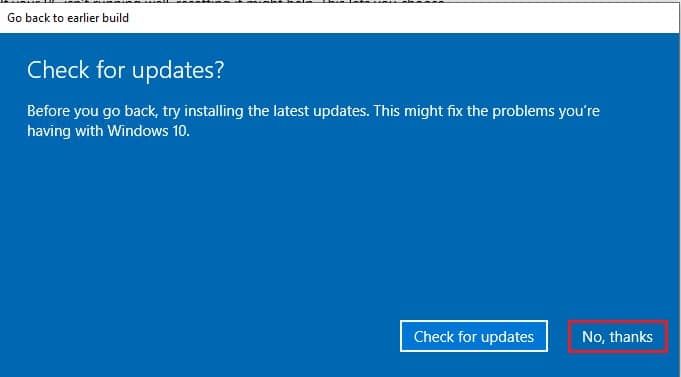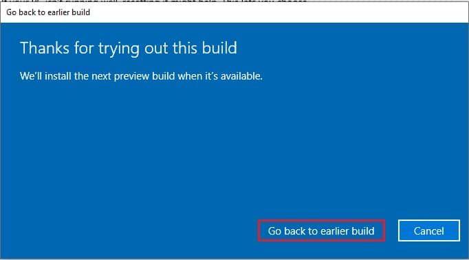 Поскольку этот метод может вернуть вас только к ранее установленной сборке, вы не можете вернуться к более старым сборкам/версиям. Для этого вам нужно будет полностью восстановить вашу систему или выполнить новую установку Windows.