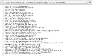 Изображение, показывающее вывод из /etc/passwd в системе UNIX / Linux с использованием php: //filter