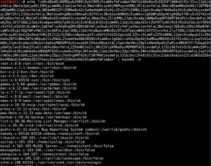 Изображение, показывающее декодированный base64 вывод из /etc/passwd в системе UNIX / Linux