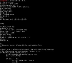 На приведенном выше рисунке показан процесс отправки обратной PHP-оболочки через SMTP с использованием telnet