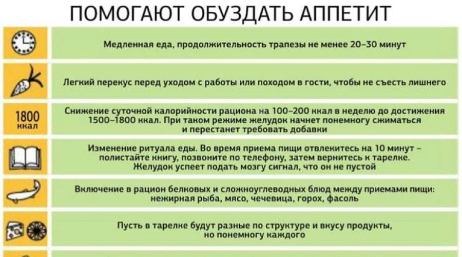 Обратите внимание: Чтобы не спровоцировать аппетит, необходимо съедать выложенную на тарелку еду в нужном количестве в течение 20 минут. Грелин перестанет вырабатываться с первым кусочком пищи, но его действие закончится только через 20 минут, после чего почувствуется насыщение.