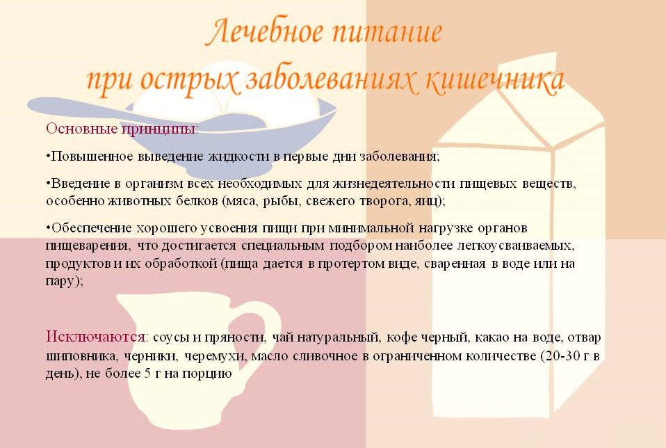 | Блюда на первое | Супы, приготовленные на слабом курином бульончике либо на воде | Супы с использованием молока, макарон, лапши, овощных культур из списка запрещенных ингредиентов, а также грибного, рыбного, овощного и мясного бульона |