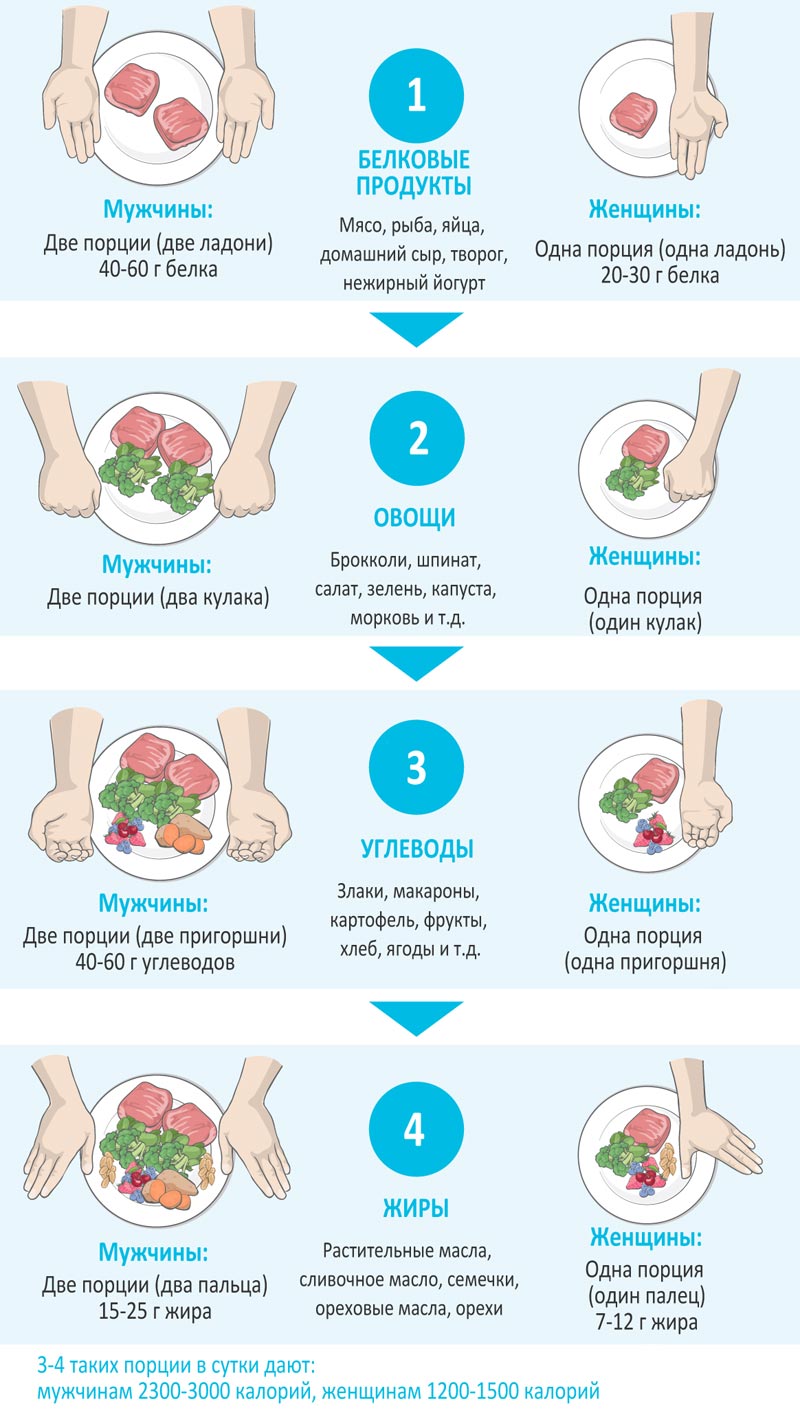 • необходимо полностью исключить переедание, обеспечить прием пищи с высоким содержанием белка с интервалом 2-3 часа.