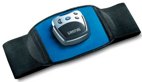 Четвертую строчку занимает миостимулятор Sanitas SEM30. Пояс выполнен из гибкого материала и фиксируется с помощью ленты-липучки. Изделие подойдет для талии объемом от 70 до 140 см. Прибор оснащен двумя электродами размером 10х10 см, для работы которых не требуется контактный гель.