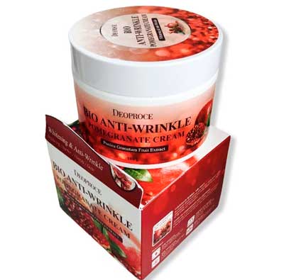 Третью строчку занимает крем для лица c экстрактом граната Bio Anti-Wrinkle Pomegranate Cream корейской марки Deoproce.